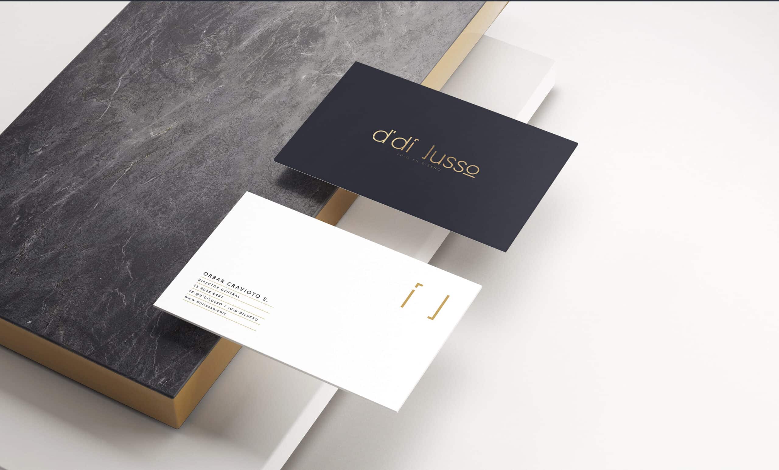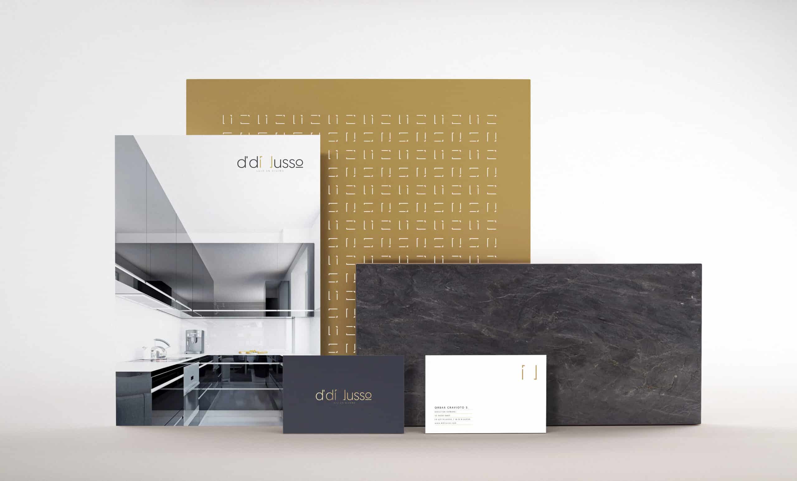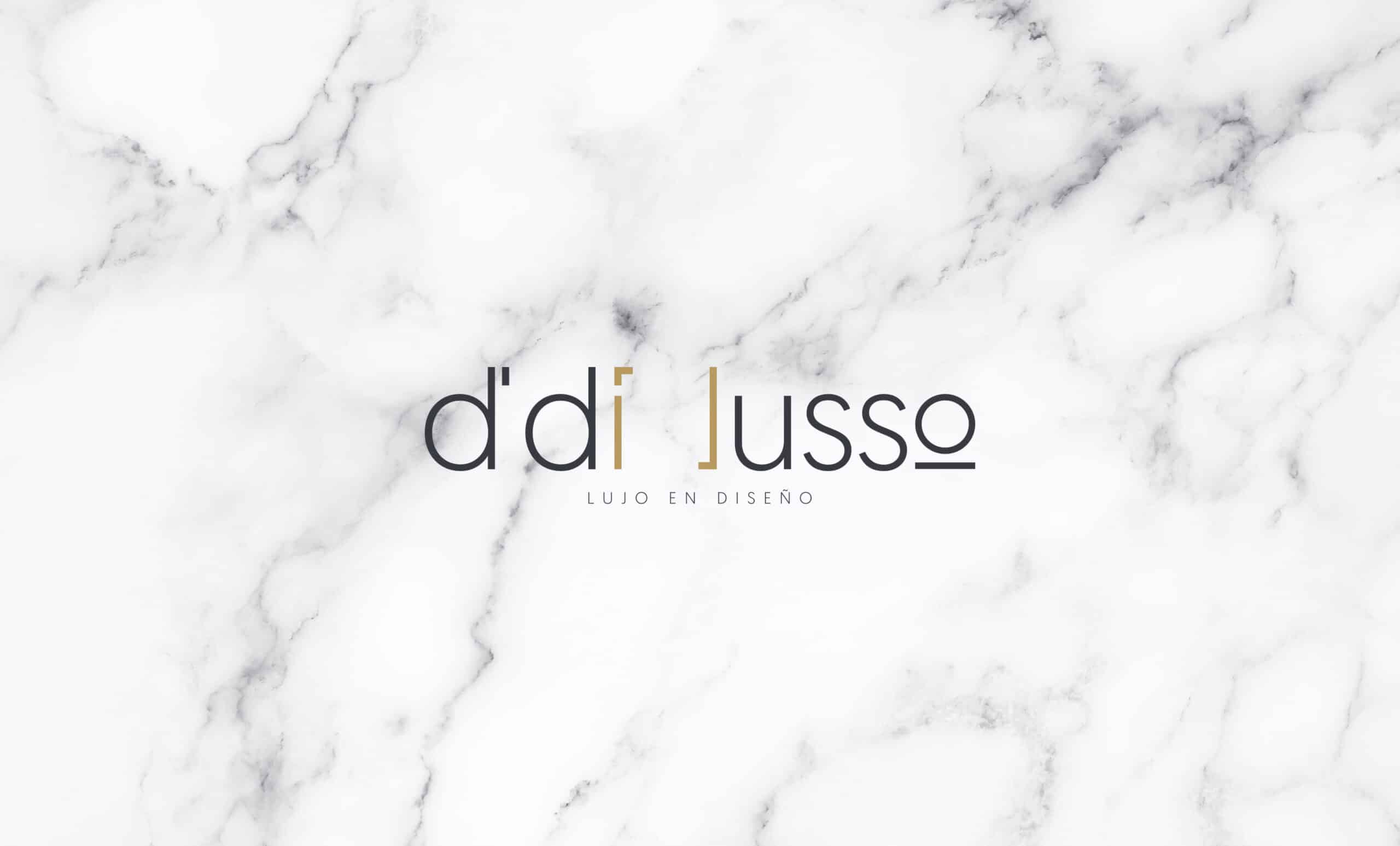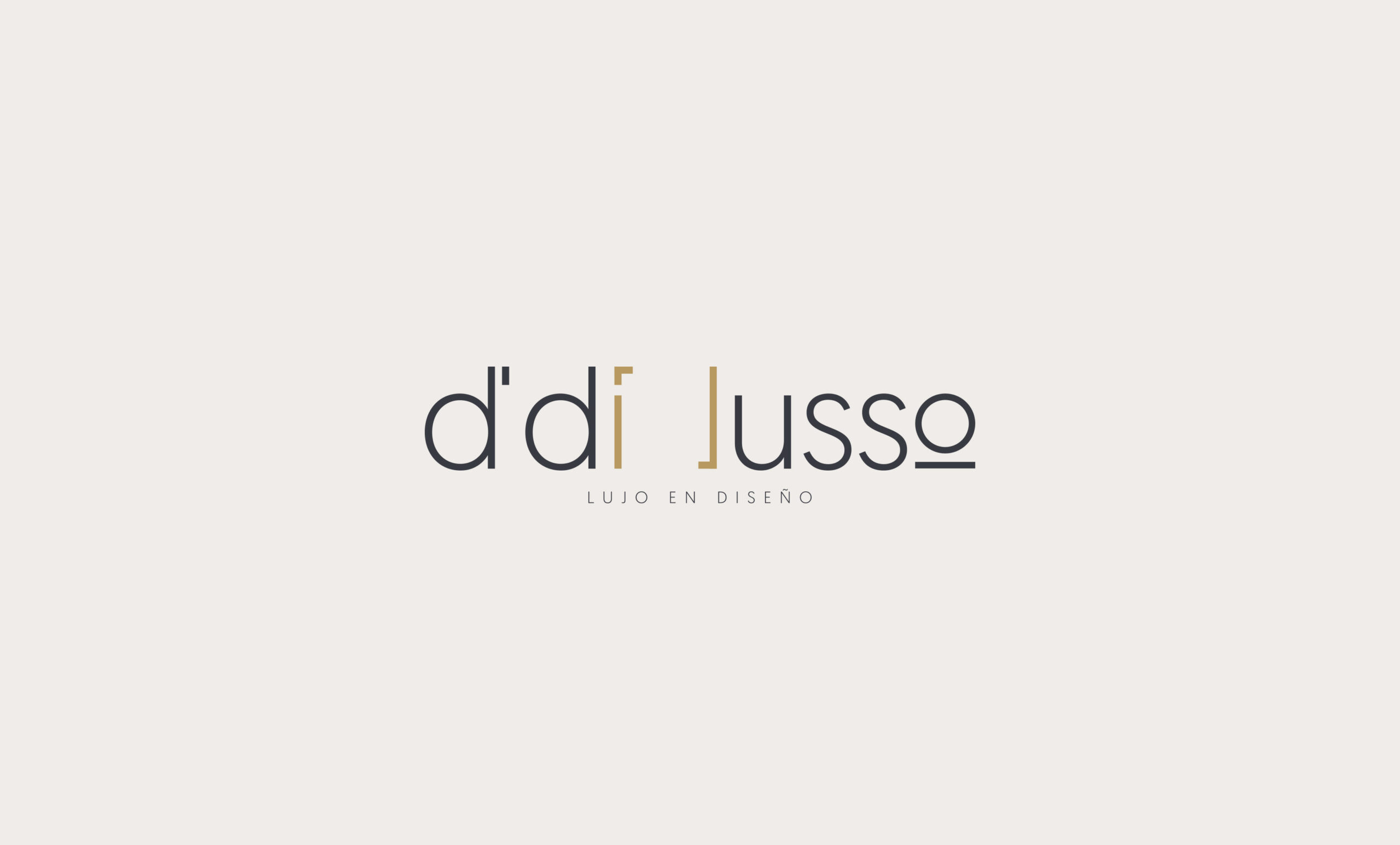 Nuestra identidad gráfica toma inspiración a partir de dos conceptos, por un lado, la geometría y limpieza visual que D’ Di Lusso maneja en sus diseños, y por otro lado, las texturas y los colores que éstos tienen en complemento con una tipografía san serif en un acomodo tipográfico bien pensado donde aprovechamos los aires y espacios visuales que el propio nombre tiene para crear una identidad visual única y propia.