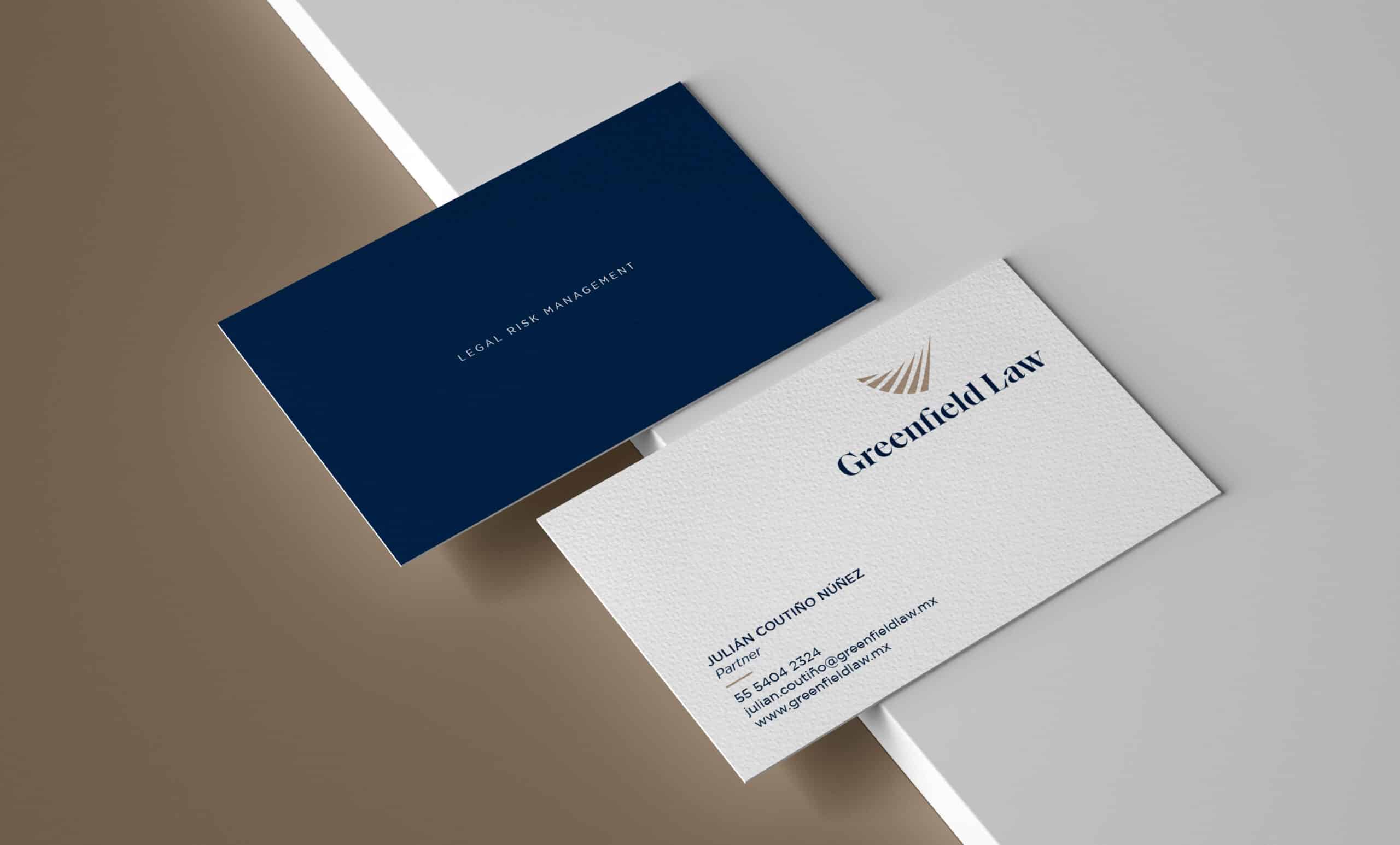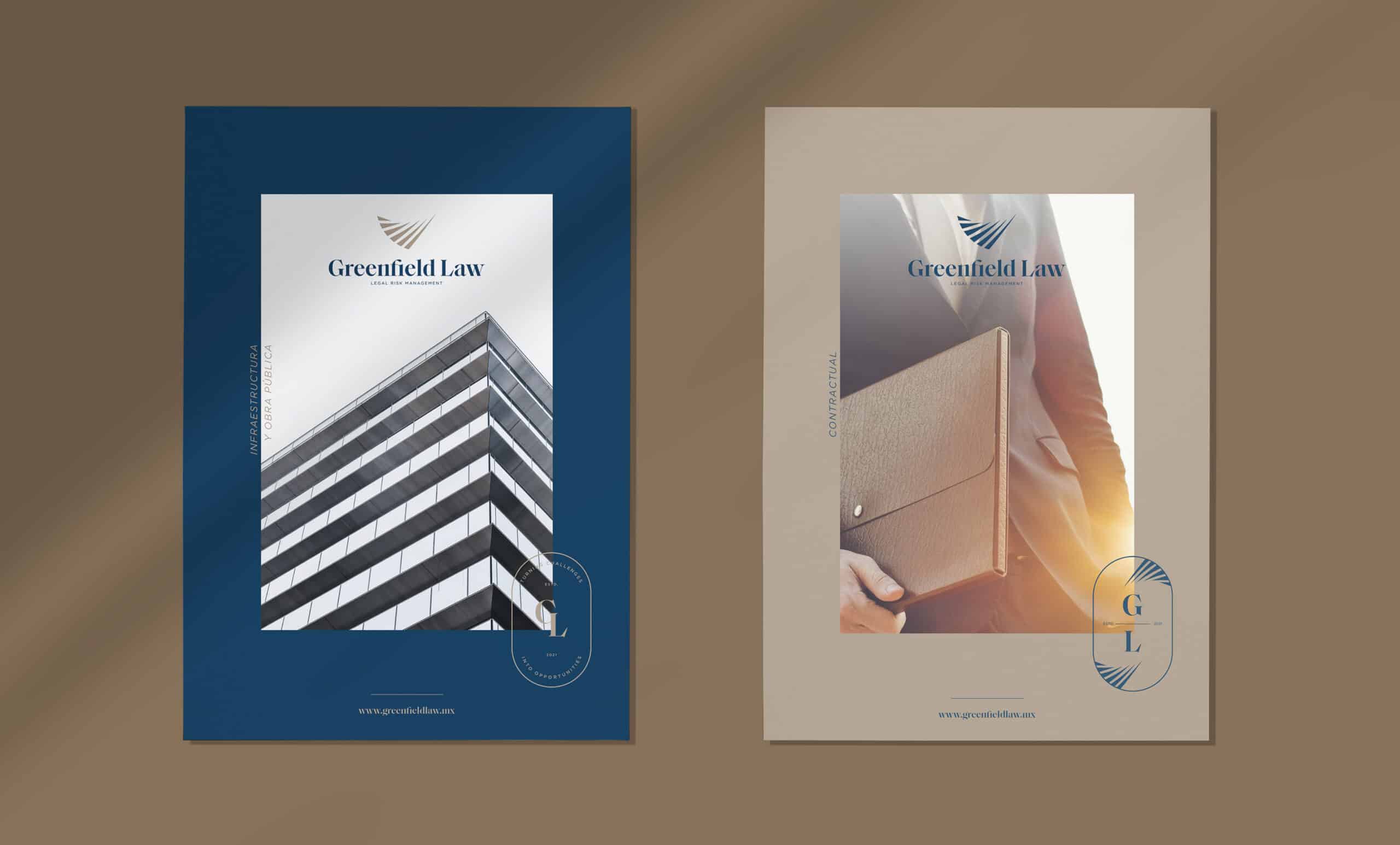 Crear la identidad gráfica para Greenfield Law, tomando en cuenta que su imagen debe ser premium y limpia para comunicar todos sus servicios a través de una marca actual y líder dentro de su ramo.