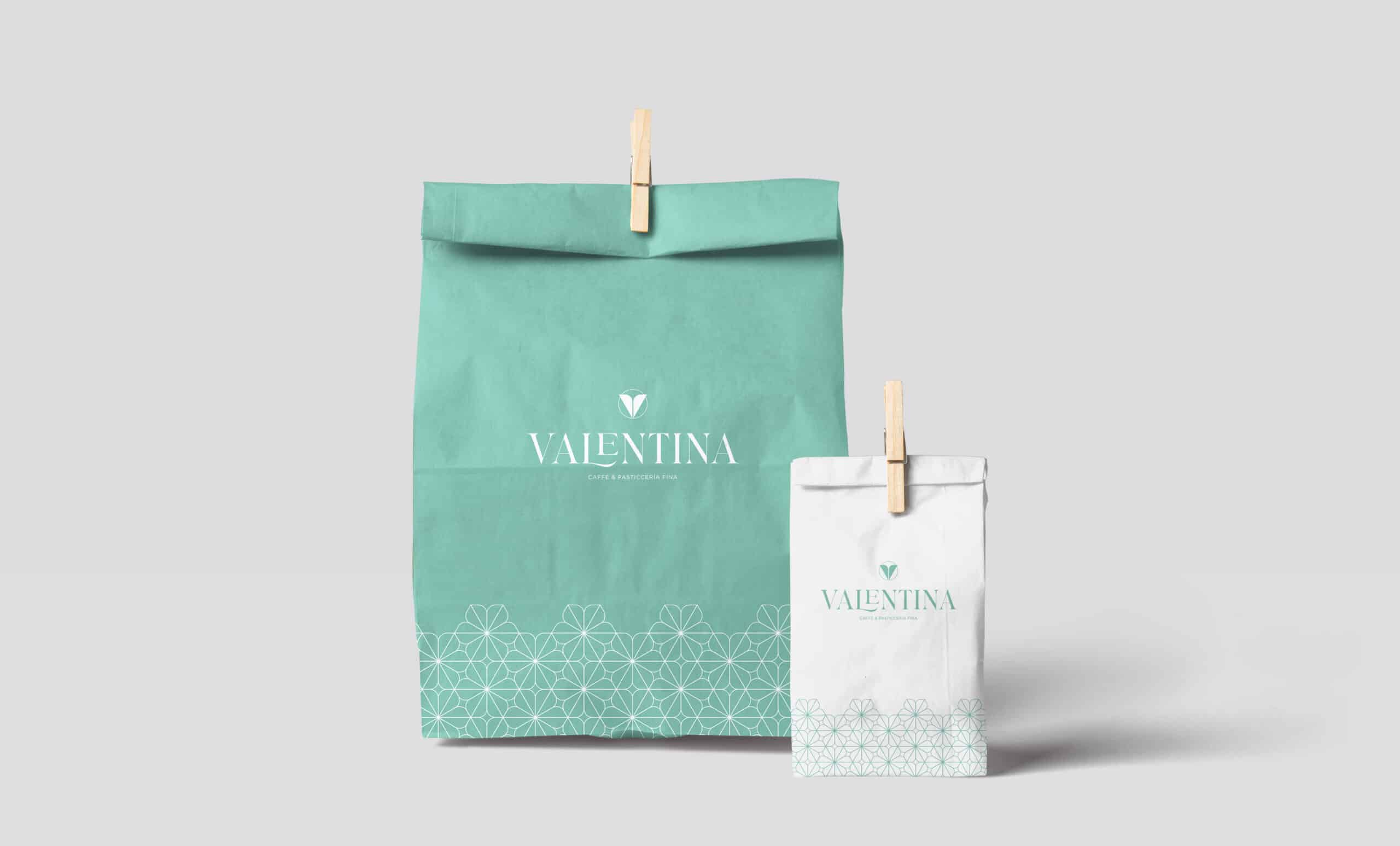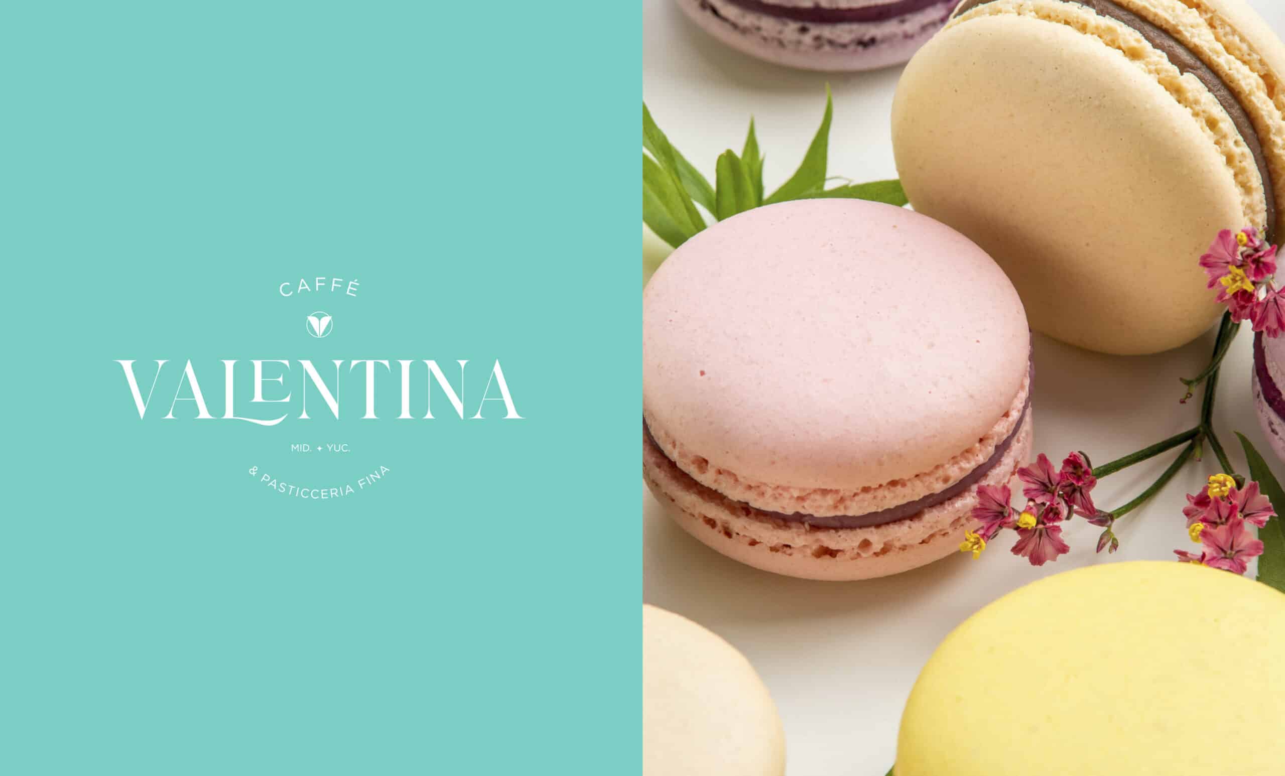 Nuestra identidad gráfica toma inspiración a partir de tres conceptos: La letra principal de nuestra marca Valentina, las increíbles formas que se hacen en la repostería y la hermosa simplicidad y formas de las flores, en una composición armónica, usando una paleta de color suave, fresca y sofisticada con una tipografía que le da a la marca una identidad propia.